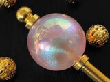 表面にはシャボン玉の様にオーロラ色に輝くコーティングが施されており、
