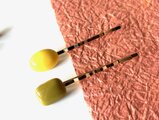 からし色と抹茶色のシンプルカボションで、ヘアピンを作りました。