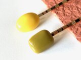 ヘアピン2本セット からし色と抹茶色のシンプルカボション グリーン 黄色 緑 ゴールド オーバル スクエア