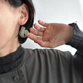 「織夢ピアス」はその軽さと柔軟性で長時間の装用でも快適です。どんな装いにも柔軟に馴染むデザインで、特にシンプルなスタイルやモノトーンの服装によく映えます。