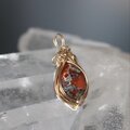 レビュー遅れまして申し訳ありません。暖かい雰囲気の石で、マクラメ編みも石の雰囲気と合っていて、タイトル通り内包物がお花のようでとても気に入っております。大切に使わせて頂きます。