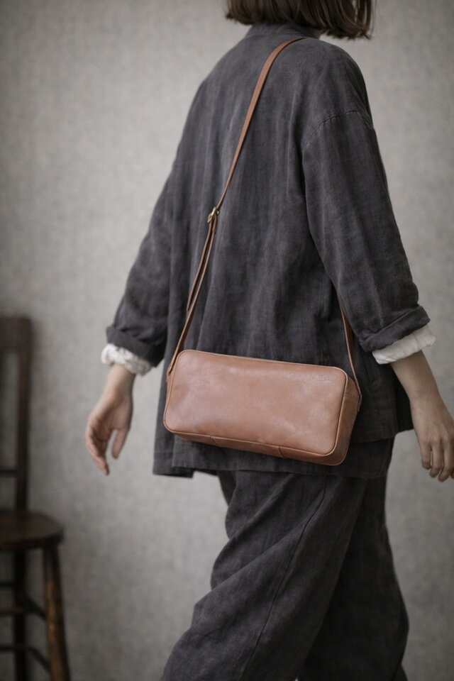 体に沿いやすいショルダー仕様で、日常使いしやすい形に整えました。