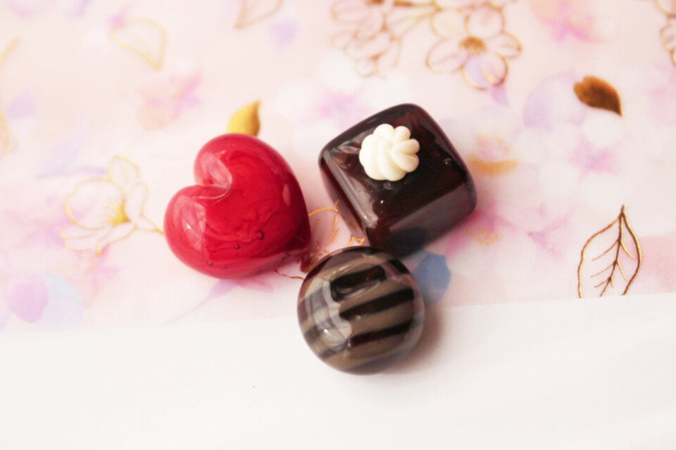 バーナーワークの技法で制作した、とっても小さなチョコレート3種です。