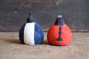 牛革に豚革を貼って作ったおひなさまです。中は空洞です。