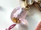 とんぼ玉はピンクの透明ガラスの中にシルバーホイールが入っています。