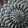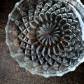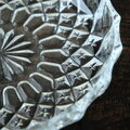 見込みに花文様◆ずっしりとした重み。昭和後期 クリスタル・プレスガラス中皿 古民家 古道具 ニュートロ 暮らしに