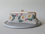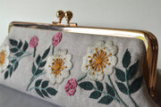 がま口ポーチ他、内布には表地の刺繍を際立たせる為に敢えて柄の無い布(主にリネン)を使用しています。