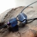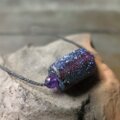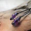 細い紐を通すには穴が大きいので、アメジストの丸玉を添えました。