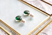 うるうる、ちゅるんと輝くモスグリーンが宝石のように美しいピアス。