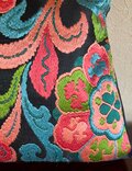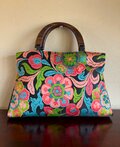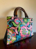 なんともビビットな色合いの唐織りの帯地を手提にしました。