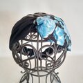 クロスタイプのヘアバンド ターバン 水色薔薇×黒 3
