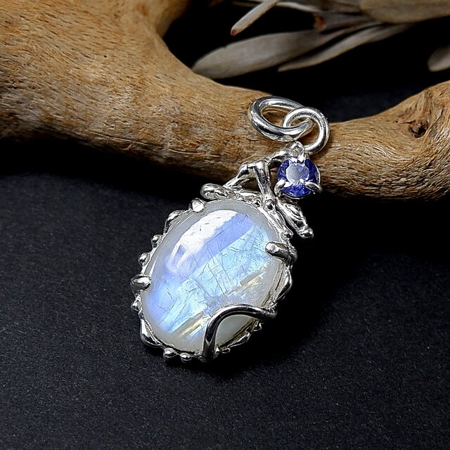 ~幻想的な輝き~ レインボームーンストーンとタンザナイトのデザインペンダント 天然石アクセサリー 一点物