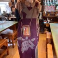 茶色の牛革と着物生地のパッチワークを組ませて作りました。