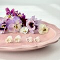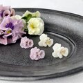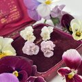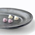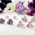 繊細で可愛らしいフリルビオラをモチーフにした、陶磁器製のイヤリング/ピアスです。