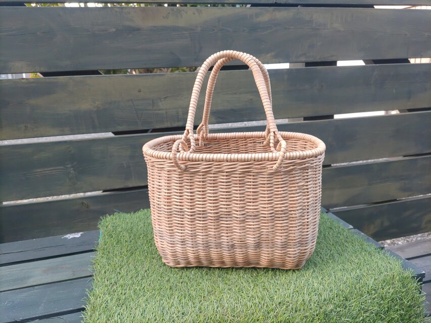 編み色がまだらで全体的に黒っぽいです。全く染めても無く自然の籐です。色の綺麗な籐かごをお求めの方にはお勧めしません。