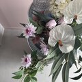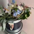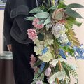色鮮やかなブルー系の紫陽花が一足早く部屋の中で咲いたようで、部屋が一段明るく華やぎました。 とても素敵なブーケを作って頂き、どうもありがとうございました!