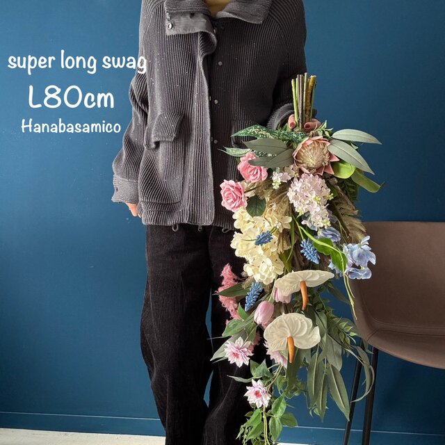 【迫力の90cm!】ツルにはトクレマチスを。スイトピー、ムスカリ、チューリップetc/春の花を束ねたボリュームスワッグ!