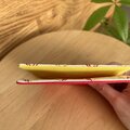 表は2枚とも同じデザインですが裏布は鮮やかな赤と黄色で1枚ずつ色を変え、