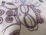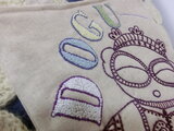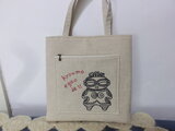 ベージュのコットンリネン地に可愛い土偶ちゃんを手刺繡したミニバックです。
