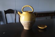 19世紀 黄釉 ガーグレット ピシェ ピッチャー 花器 花瓶 フランス アンティーク 0502032