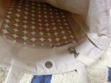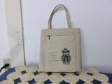 ベージュのコットンリネン地に可愛い土偶ちゃんの刺繍を刺したバックです。