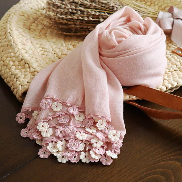 素材:混合パシュミナ(薄手) オヤ部分:ポリエステル糸、ビーズ