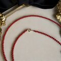 さくらんぼのような可愛らしい色合いの珊瑚を贅沢に繋げたロングネックレス。