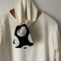 ストール付き手袋水玉長袖圧縮ニットウールカットソー オフ×黒白F