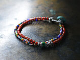 カラフルなクリスマスビーズと、ホワイトハーツ、カレンシルバービーズ、グリーンシェブロンを繋いだ2連のブレスです。