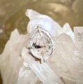 太古の石油を内包したまま成長した、水晶の片耳ピアスです。ブラックライトを当てると、オイルの部分が蛍光色に光ります。