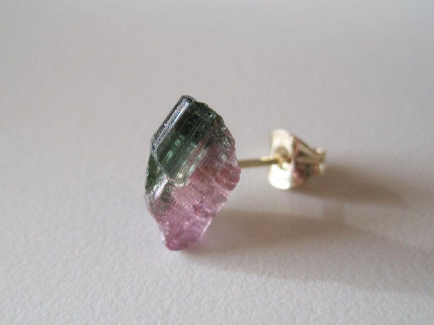 ウォーターメロントルマリンの結晶原石のピアスです。