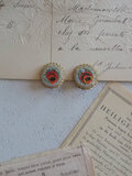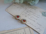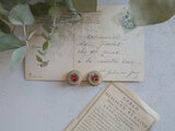 淡いグレーに赤いお花が鮮やかな、モザイクガラスイヤリングです。