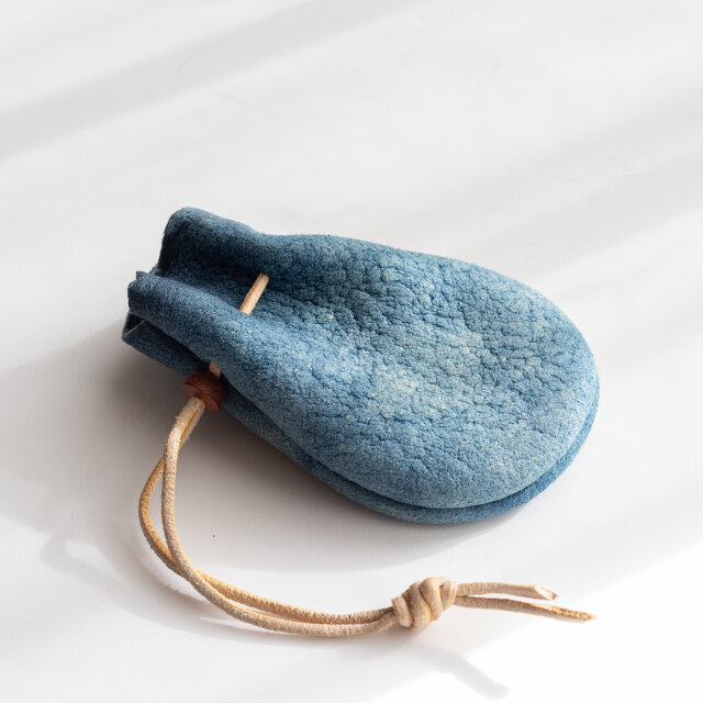 藍染鹿革巾着袋 220129