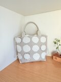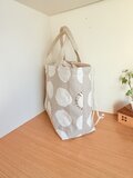 入れ口部分が巾着タイプになったバッグです。巾着を絞ると中身が見えず安心です。