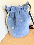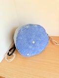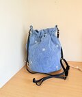 入れ口が巾着になった丸底のショルダーバッグです。