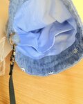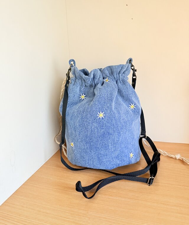 素材はデニム。花柄の刺繍が施された生地です。