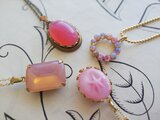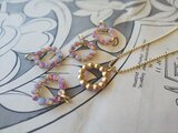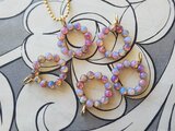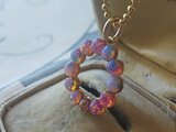チェコまたはGermanヴィンテージのPinkファイヤーオパール(約3㎜)が12粒埋め込まれた愛らしいRingトップでお作りしましたネックレスです。