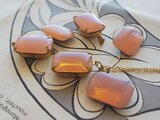Germanヴィンテージ、18×13㎜の魅力的な発色の淡く温かなピンク色のGlassでお作りしましたネックレスです。