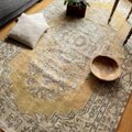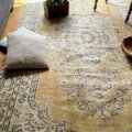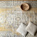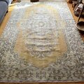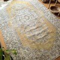 超大判153×253メダリオン イエローオレンジ グレイ トルコヴィンテージラグ