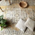 まろやかでくすんだ淡いイエローオレンジグラデーション、クリーム、グレイ、華やかなメダリオン。