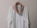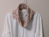 再々オープン記念価格〜コットンリネンの花モチーフつなぎのハーフスヌード(ピンクベージュ)