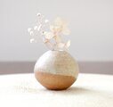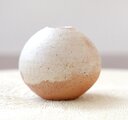 土物らしさを感じられる荒めの白陶土と、あたたかで素朴な質感の藁灰釉を使用して制作した、ちょこんと小さな一輪挿しです。