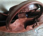 一目惚れのバッグでした。 実物は思っていた通り、革の色合いとか何とも言えない素敵なお品です。 また、サイズ感もちょうど良くて、軽くて、大切に使わせていただきます。 この度は、ありがとうございました。