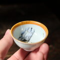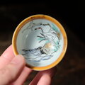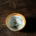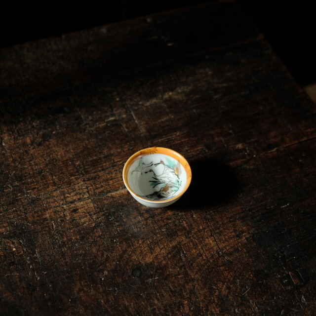 岩場に鶴◆九谷焼 色絵金彩猪口 酒器 古民家 古道具 骨董/antiques 大正〜昭和初期