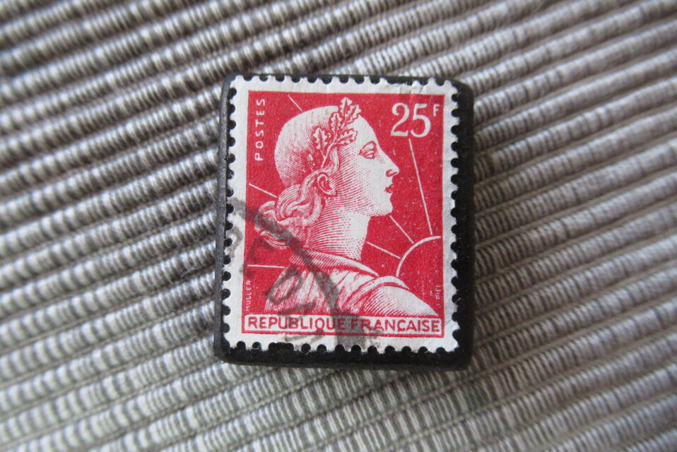 アップサイクル アルジェリア マリアンヌ切手ブローチ10347