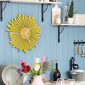 木製ウォールクロックThe Sun (太陽) - 41cm/59cm手作りのイエローウォールクロック