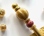 ※使用ビーズ及びかんざしの飾り部分の長さには、各1~2mm程度のパーツ個体差があるため、商品画像には写っていない、サイズ調整のための1mm厚の丸カン(リングパーツ)を1~2個挿入するなどして、飾り部分の隙間を埋めることが有ります。あらかじめご了承下さい。
