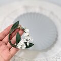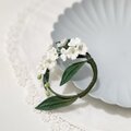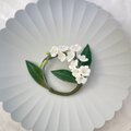 見た目にもかわいらしいすずらんのお花を、季節を気にせずお使いいただける布花のリースタイプのコサージュに仕立てました。
