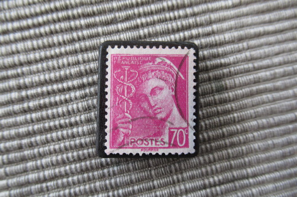 ビンテージ切手をブローチにリサイクルしました。