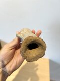 赤土の粘土の素焼きに灰白色の釉薬をかけて本焼きされています。